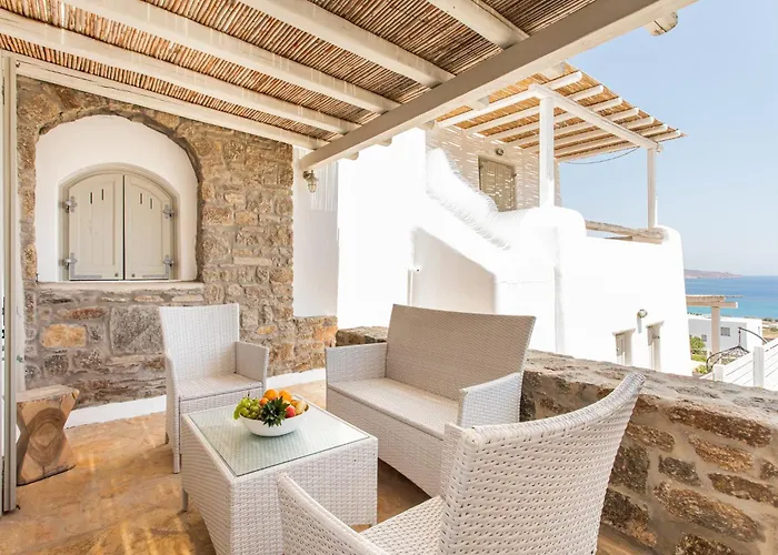 Paralia Agia Anna ligger omkring 10 minutters gang derfra, mens Kalafati centrum ligger 1 km fra stedet. Gæsterne kommer til Windsurf Centre Mykonos på 10 minutters tur til fods.Du kan komme til Panagia Tourliani-klosteret om få minutter i bil.